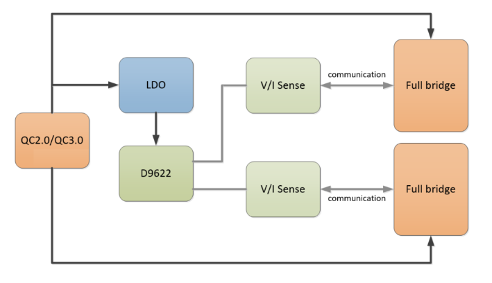 隨著人們手邊的電子設備越來越多,為兩款或多款設備同時充電的用戶需求越來越強烈。此外,Type-C接口也越來越火,USB PD快充協議也是大勢所趨,逐漸成為主流。對于無線充來說,支持雙設備同時無線充電、USB PD快充輸入的產品很自然的就有了不小的市場需求。為了滿足這一市場需求,貝蘭德正式發布“一芯雙充”方案D9622。